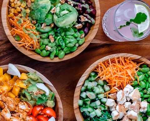 Des bols remplis de saveurs combinant les ingrédients les plus frais, des vinaigrettes maison et un large éventail de garnitures. Le vrai goût des vacances dans un bol !
